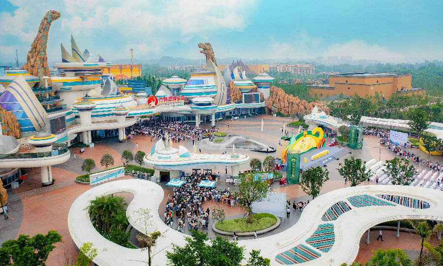 On June 18th, a new theme park named Fantawild Dino Kingdom opened in Sichuan Province. On opening day, a ceremony complete with music and colorful decorations was held at 9am at the park entrance to celebrate the occasion.