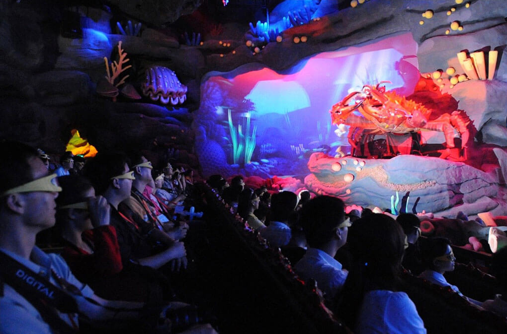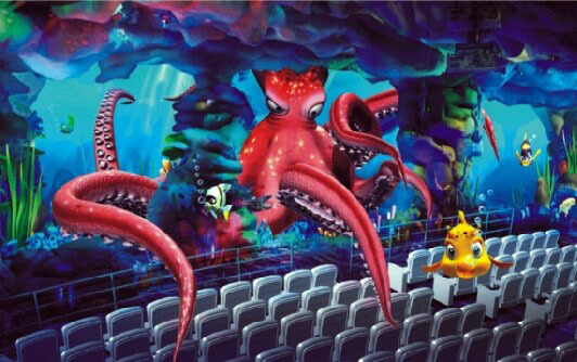 4D Environmental Theater is a large attraction that integrates multiple large screens, elaborate props and mechanical models. It retains all the features of a traditional 4D theater, but boasts a unique combination of real and virtual imagery and special effects, creating a highly realistic environment related to the story being told.