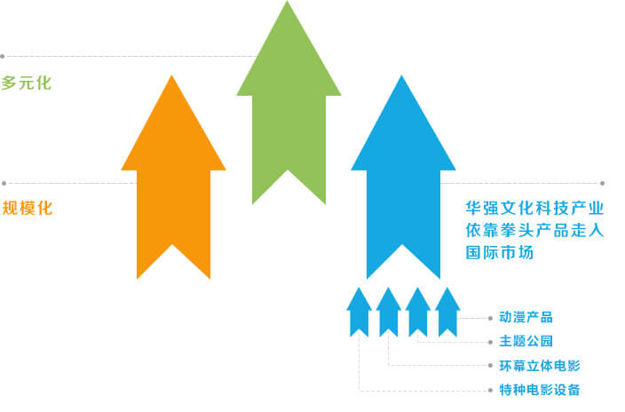 黨的十八大報告提出,促進(jìn)文化和科技融合,發(fā)展新型文化業态。 “十三五”規劃綱要明确“推動文化産業成(chéng)爲國(guó)民經(jīng)濟支柱性産業”的目标要求。作爲中國(guó)文化科技領軍企業,華強方特深入貫徹黨中央精神指示,堅持文化科技融合發(fā)展,深化創新引領驅動,以講好(hǎo)中國(guó)故事(shì)爲己任,國(guó)際範圍傳播中國(guó)文化,創新打造“創、研、産、銷”一體化産業鏈,實現文化科技産業規模化、多元化、國(guó)際化創新發(fā)展。