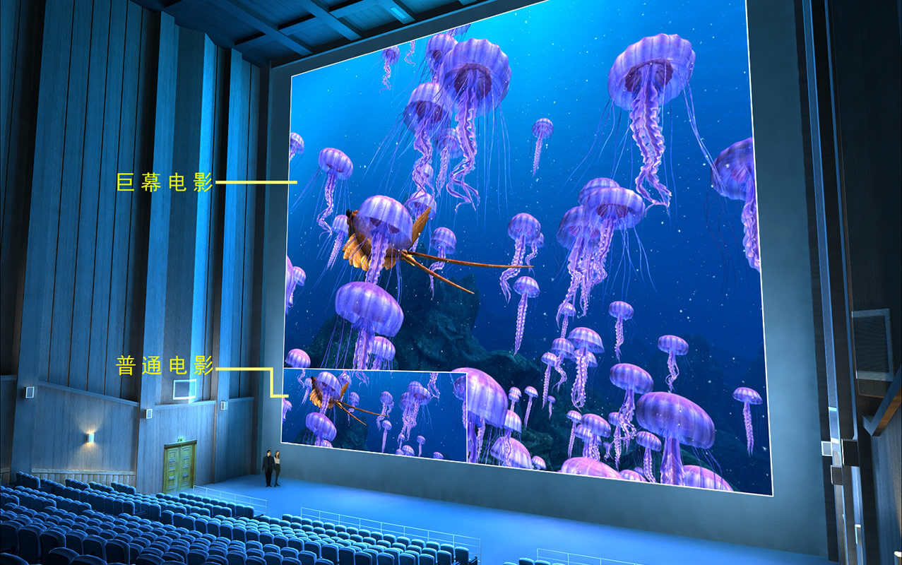 巨幕影院,擁有長(cháng)60米高16米的大型立體銀幕,弧形銀幕加以個性化的觀看角度設計充分擴展觀衆的外圍視野,影院觀衆席可容納1000人。