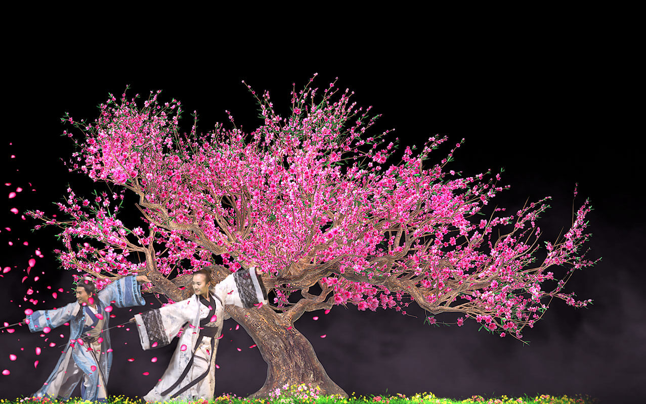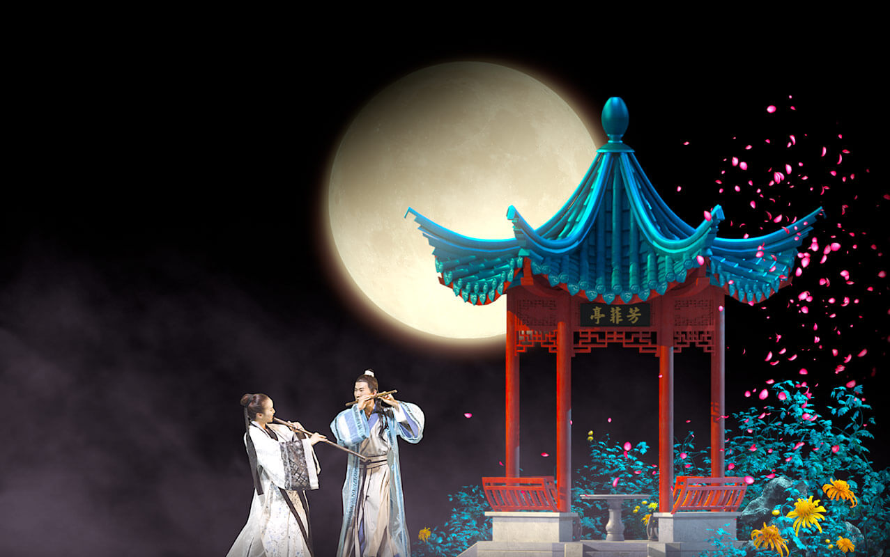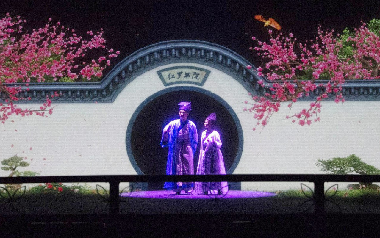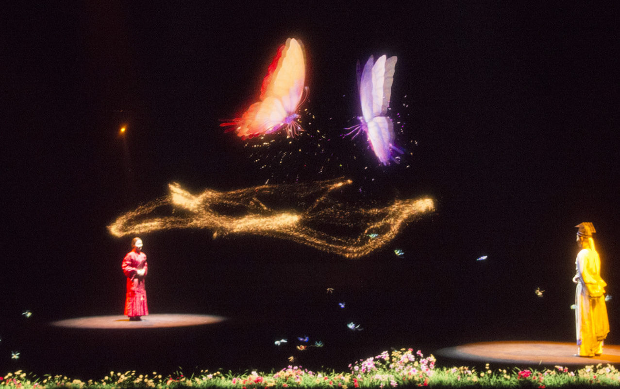 全景式AR環境影片《梁祝》,打破傳統歌舞劇場的表演形式,把真人表演與幻影成(chéng)像相結合。以《梁山伯與祝英台》的愛情故事(shì)爲基礎,精彩演繹祝英台女扮男裝上山求學(xué),與梁山伯暗生情愫,最後(hòu)爲追尋真愛而殉情,兩(liǎng)人雙雙化蝶的經(jīng)典橋段 。實現了四面(miàn)牆在通透的舞台上憑空出現,藤蔓在牆上生長(cháng),以及牆面(miàn)碎裂、崩塌甚至消失等神奇效果。