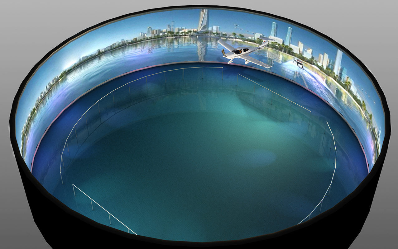 采用大直徑、高分辨率的無縫拼接立體環幕形式。影片播放時(shí),觀衆配戴特制眼鏡觀看影,360轉盤配合環幕影片正反不停旋轉,環形的熒幕將(jiāng)包圍觀衆,産生強烈的身臨其境感。